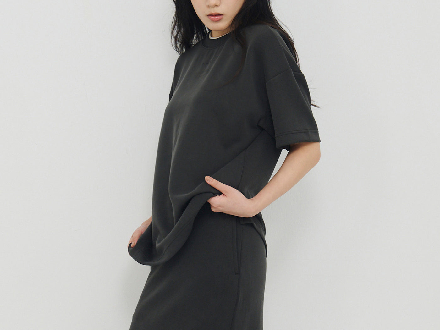 同時具有良好的透氣性和吸濕性,能夠迅速吸收濕氣並將其排出,保持肌膚的乾爽,面料的優雅垂墜性和卓越彈性,始終保持完美姿態。